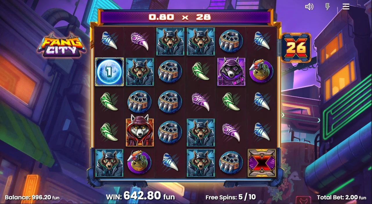 Fang City comes with a pretty big maximum payout of 10.000 times your bet and is a medium volatile slot game.