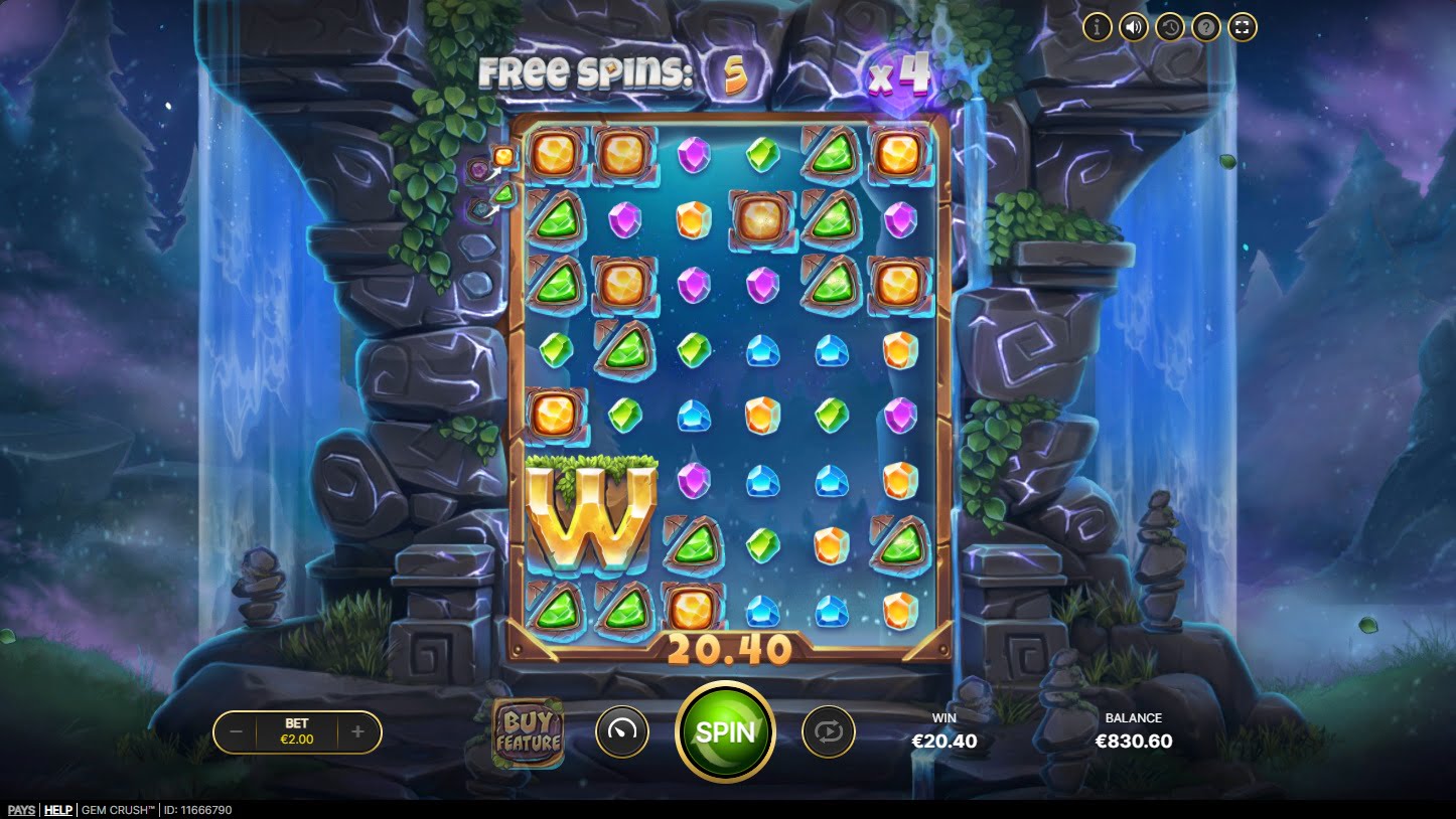 Gem Crush comes with a maximum payout of 4.361 times your bet and is a medium to high volatile slot game.