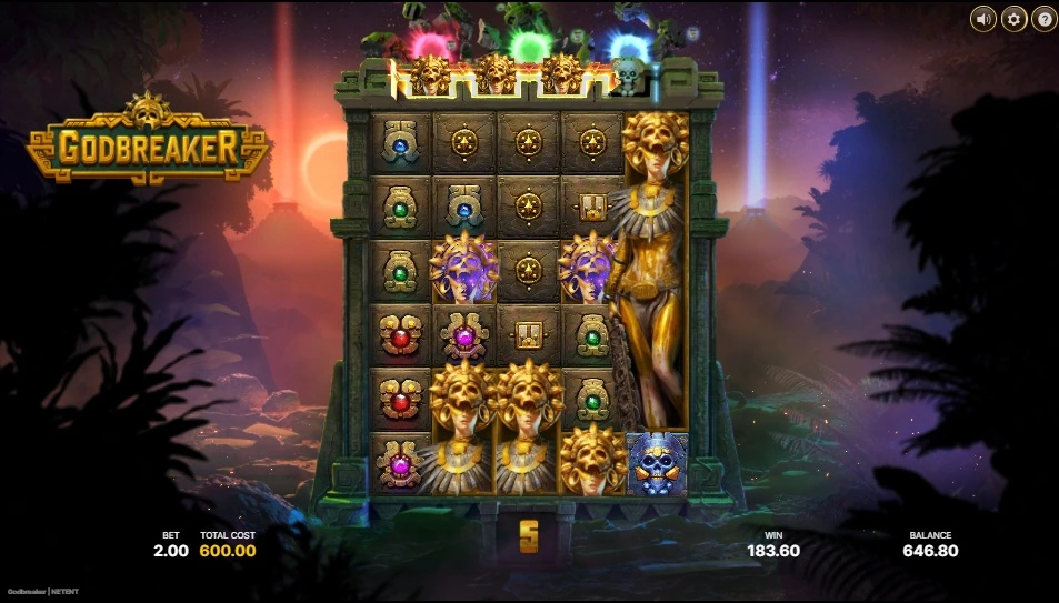 Godbreaker comes with a maximum payout of 5.468 times bet and is a medium volatile slot game.