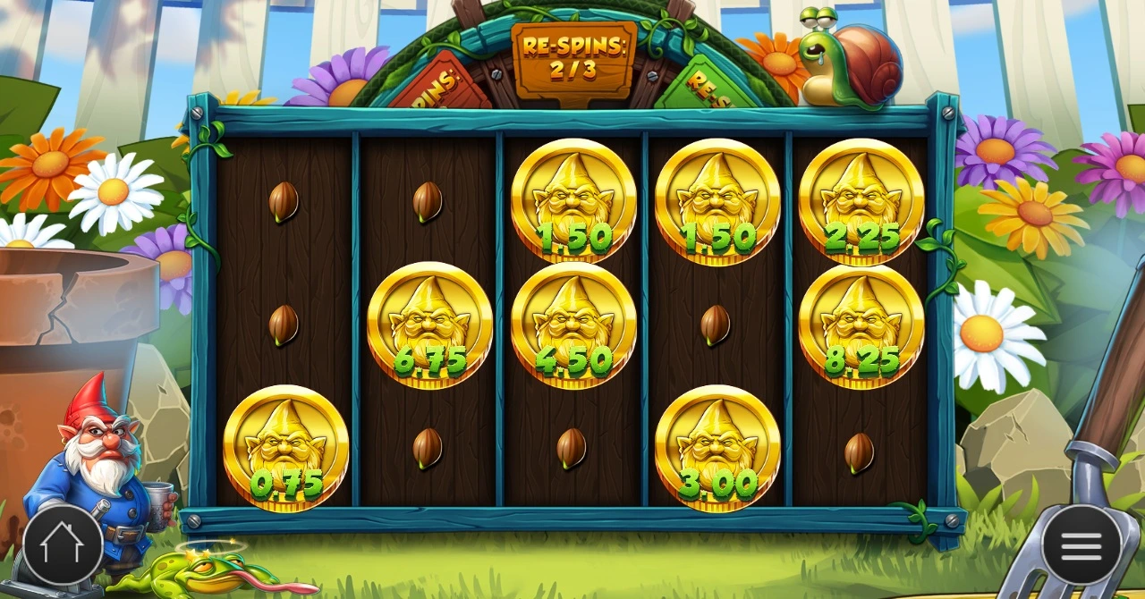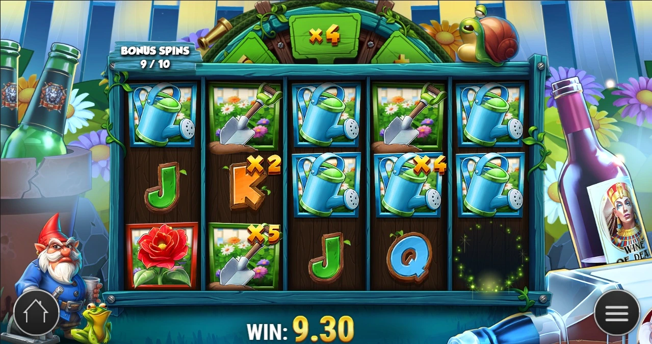 Besides low paying card symbols and medium to high paying flowers and garden tool symbols, you will also find wild symbols on all reels. Then there are also golden coins on all reels, which are needed to trigger the different bonuses.