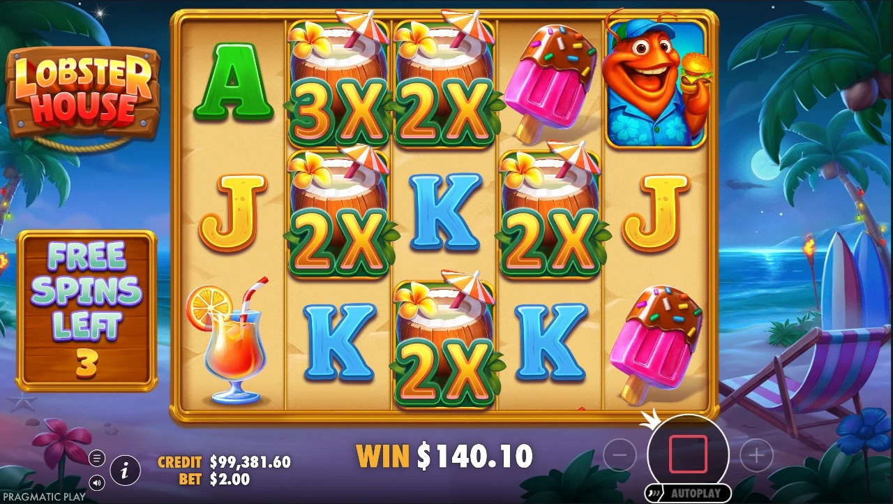 Besides low paying card symbols you will also find medium paying summer items and then we have the high paying lobsters. Wild symbols can appear on reels 2, 3 and 4 and come with a multiplier of x2 or x3. Scatter symbols, or bonus symbols, appear on reel 1, 3 and 5.