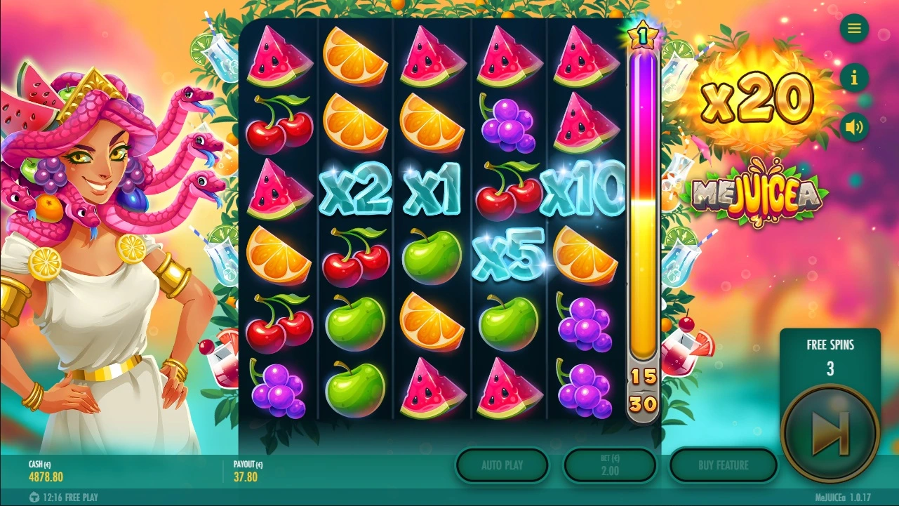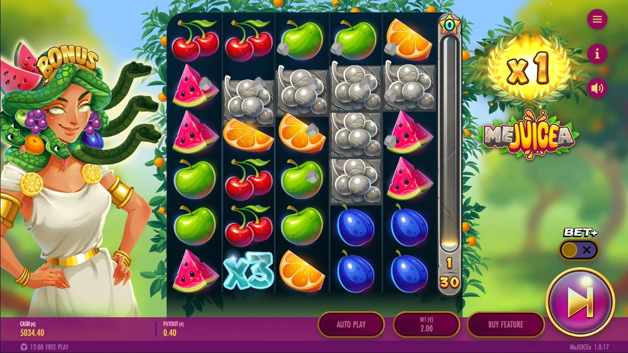 MeJUICEa comes with a maximum payout of 5.000 times your bet and is a medium to high volatile slot game.