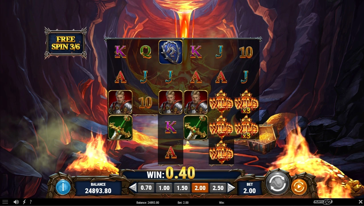 On any non winning spin there is a change to randomly trigger the Dragon’s Wrath. You will receive a re-spin where the reels become 6 symbols high. And a dragon will fly over the reels and leave a random number of wilds on the reels.