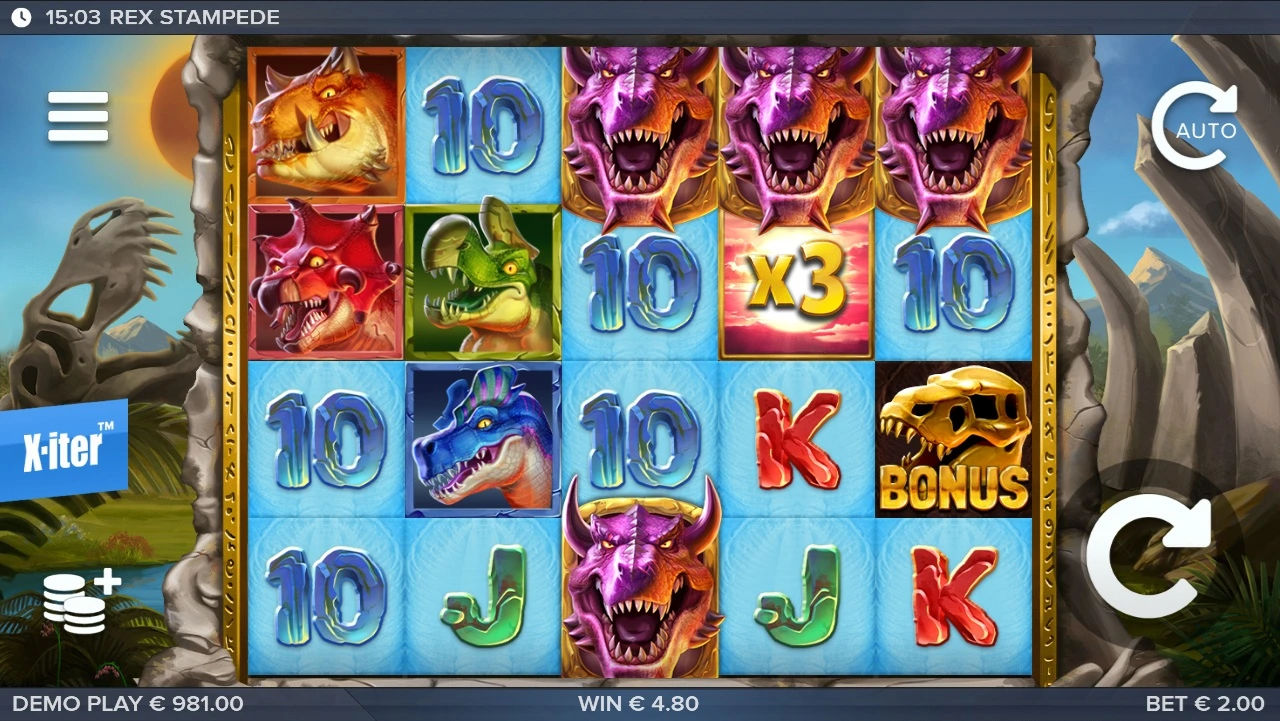 Rex Stampede comes with a very big maximum payout of 25.000 times your bet and is a high volatile slot game.