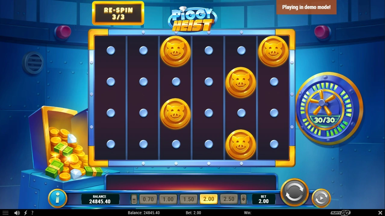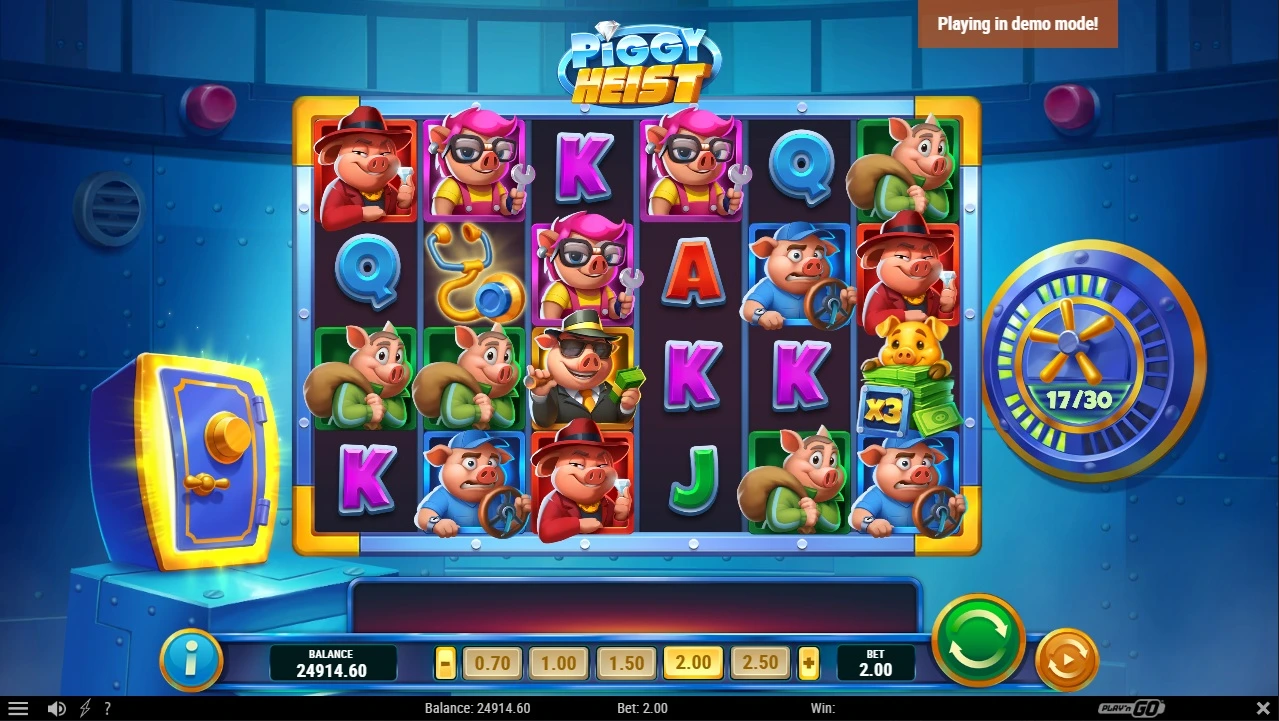 Piggy Heist comes with a huge maximum payout of 70.000 times your bet but is still a medium volatile game.