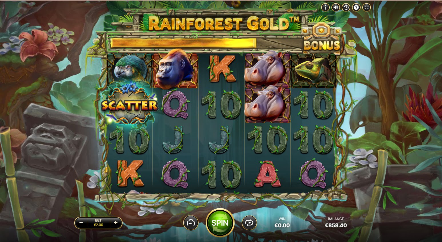 Rainforest Gold comes with a maximum payout of 5.085 times your bet and is a medium to high volatile slot game.