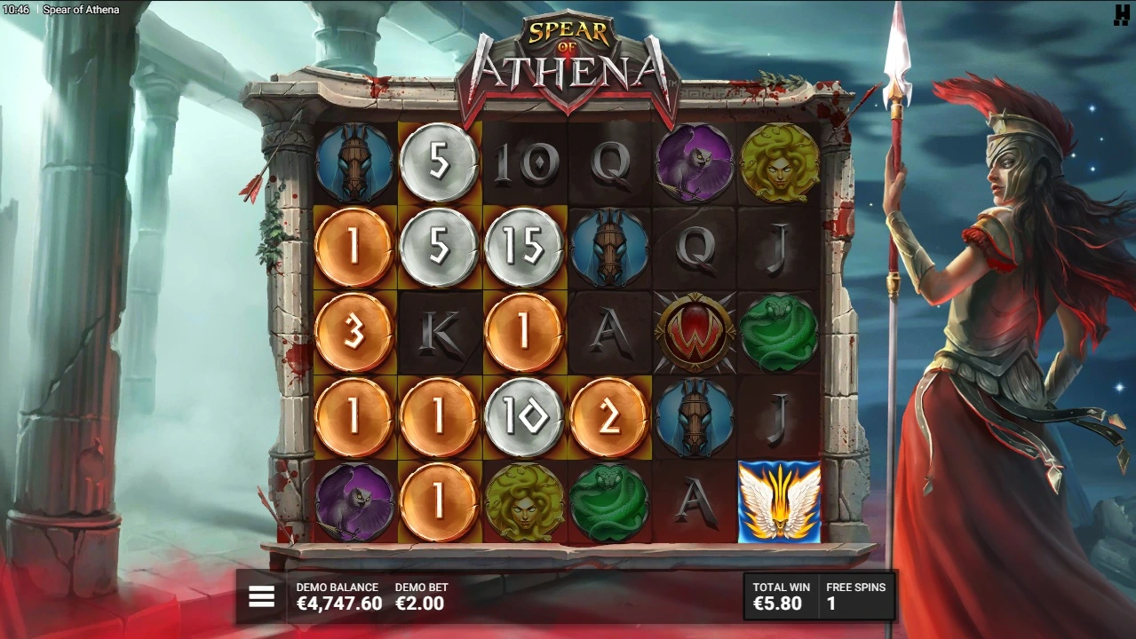 Spear of Athena comes with a pretty big maximum payout of 15.000 times your bet and is a medium volatile slot game.