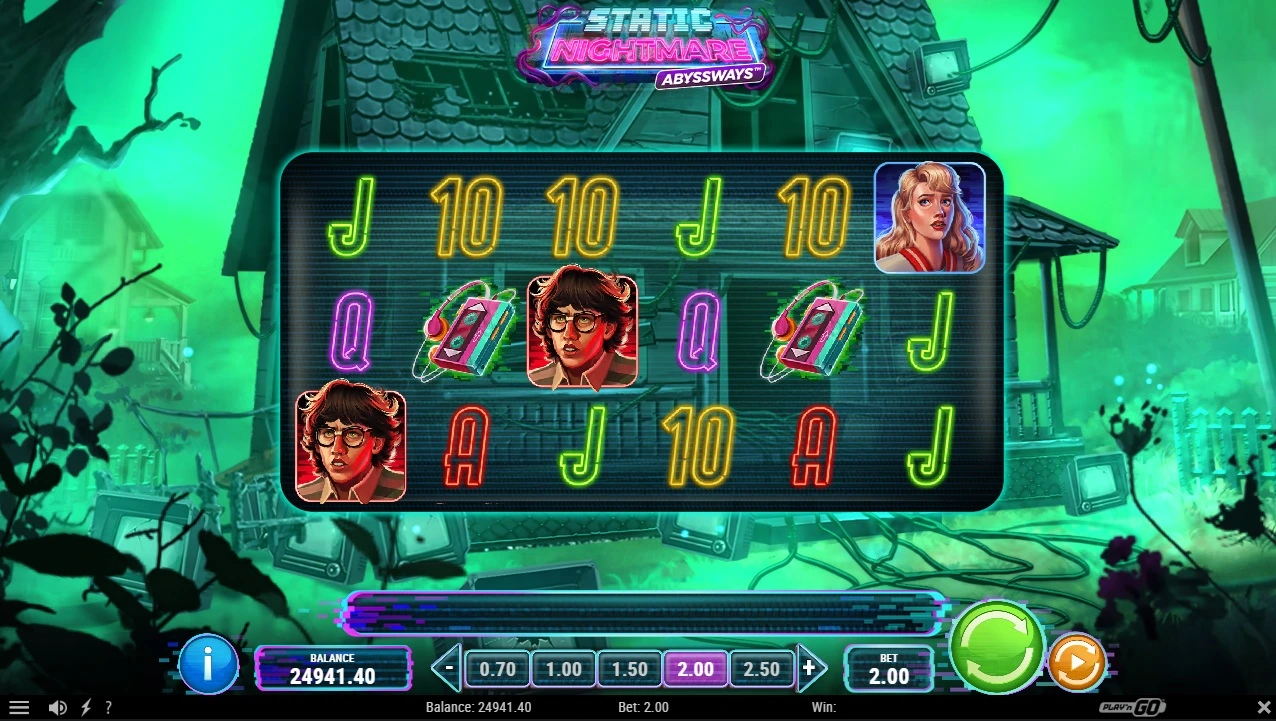 Play’n Go already released two slots with their Abyssways mechanism. Scourge of Rome and 13th Trail Hercules Abyssways. Now, just in time for Halloween they have released Static Nightmare Abyssways.