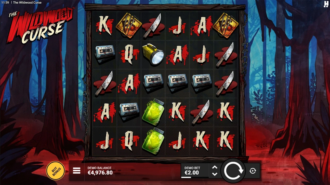 The Wildwood Curse offers several bonus buy options. For 3x the bet you can activate a 5 times higher chance of triggering the bonus. 75x the bet will guarantee you to land a Cursed Cluster. For 80 times bet you can buy 3 scatter symbols and for 300 times bet you are able to buy 4 scatter symbols. The 5 scatter bonus isn’t available to buy.