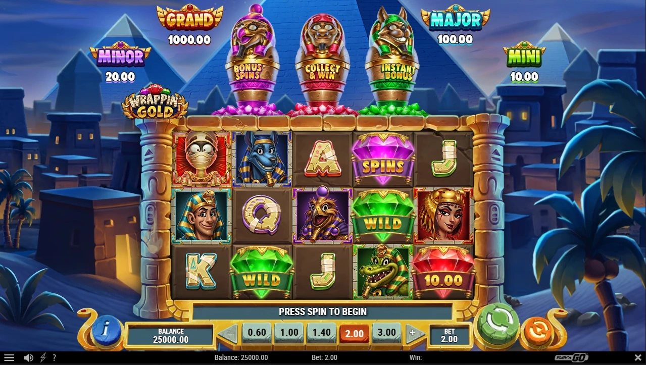 Play’n Go has released a new online slot game with a theme they are well-known for, Egyptian. The game is called Wrappin’ Gold and comes with a more fun, cartoon-like Egyptian theme with funny mummies and a lot of color.